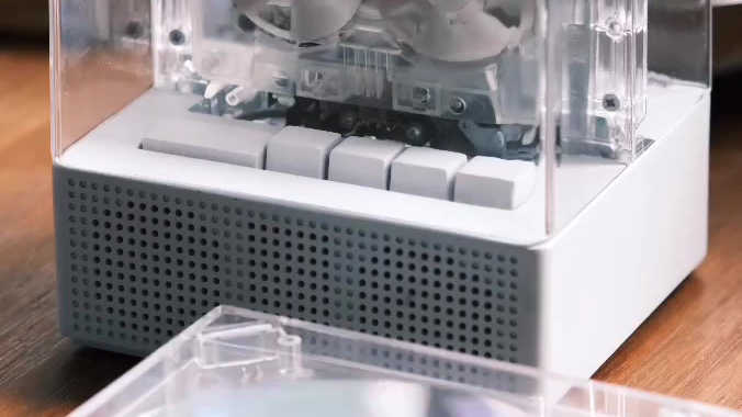A Bluetooth speaker and cassette player in one object. Watch reels spin, observe mechanical motion, and play digital music through REAL TAPE as if it were a physical cassette.